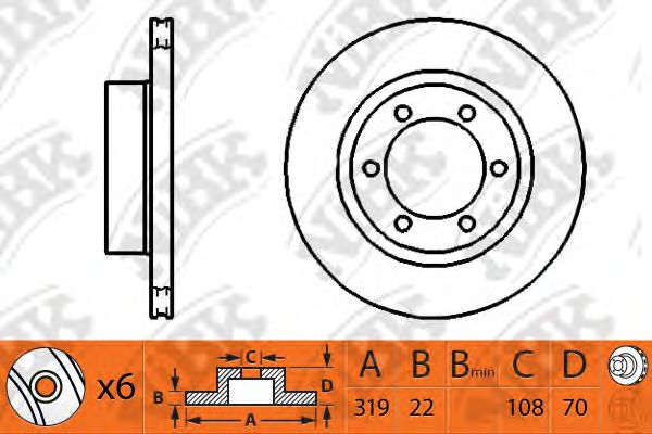Толщина тормозного диска (мм) : 22