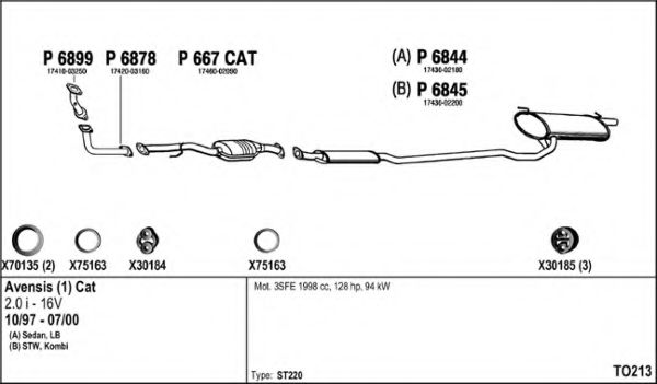 Глушитель в сборе для TOYOTA AVENSIS Liftback (_T22_) 2.0 (ST220_)