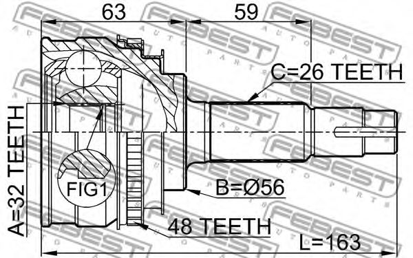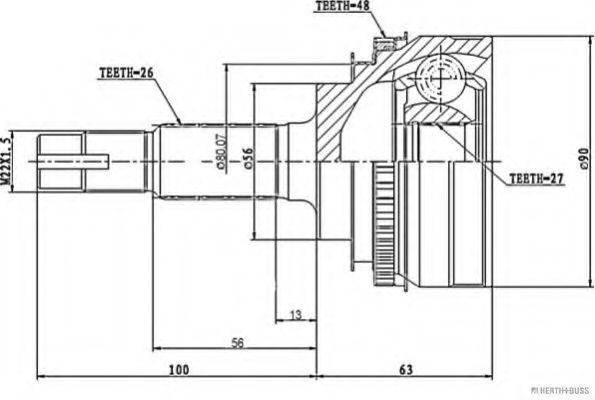 Внешнее зацепление со стороны колеса : 26Внутренне зубчатое соединение со стороны колеса : 27Диаметр прокладки [мм] : 56Общая длина [мм] : 162,5Число зубцов кольца ABS : 48