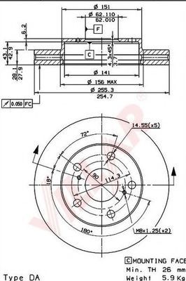 Тип тормозного диска : полный