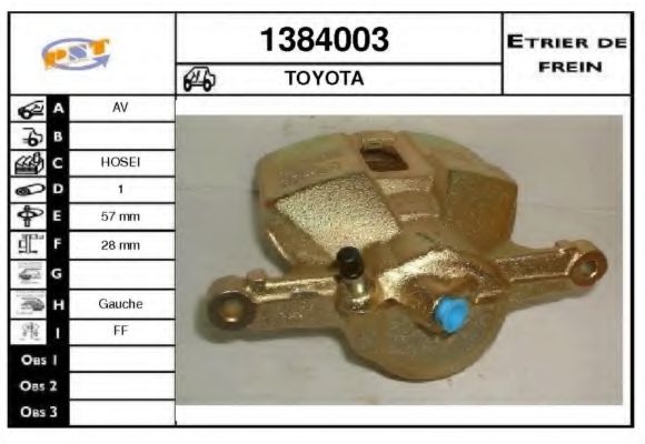 Тип тормозного суппорта : суппорт тормоза (1 поршень)