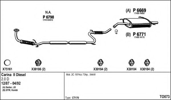 Глушитель в сборе для TOYOTA CARINA II (_T17_) 2.0 D