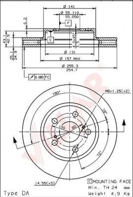 Толщина тормозного диска (мм) : 24,9