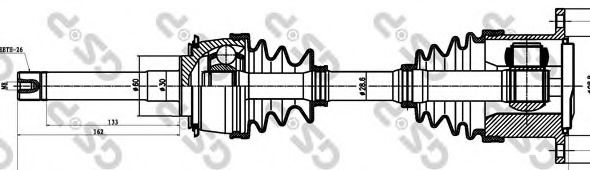 Внешнее зацепление со стороны колеса : 26Диаметр ролика трипоида [мм] : 48Диаметр шарнира со стороны колеса [мм] : 94Диаметр шарнира со стороны привода [мм] : 153Длина [мм] : 534Сторона установки : передний мост справа