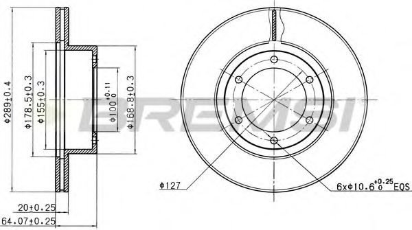 Толщина тормозного диска (мм) : 25