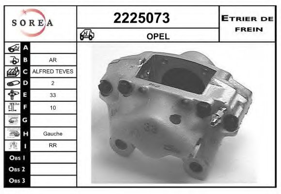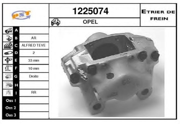 Тип тормозного суппорта : суппорт тормоза (1 поршень)