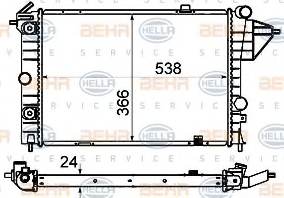 Вид коробки передач : ступенчатая / факультативная автоматическая коробка передачОснащение / оборудование : для автомобилей без кондиционераРазмеры радиатора : 538 X 380 X 23