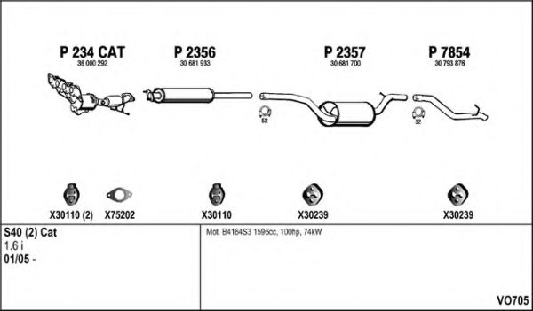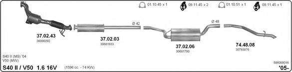 Глушитель в сборе для VOLVO S40 II (MS) 1.6