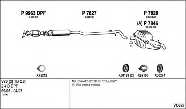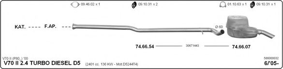 Глушитель в сборе для VOLVO V70 II (SW) 2.4 D5