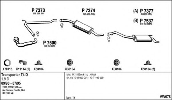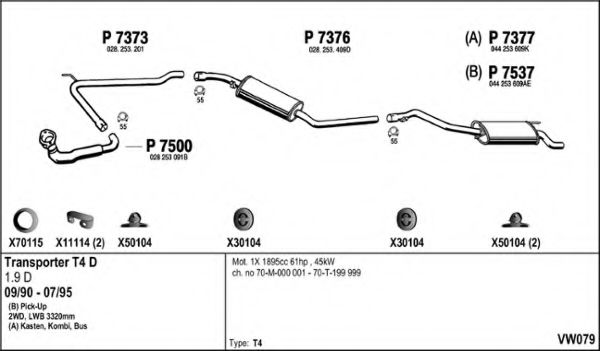 Глушитель в сборе для VW EUROVAN / CARAVELLE IV автобус (70XB, 70XC, 7DB, 7DW, 7DK) 1.9 D