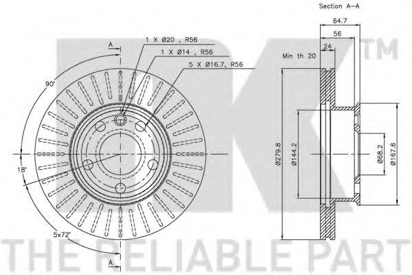 Толщина тормозного диска (мм) : 18