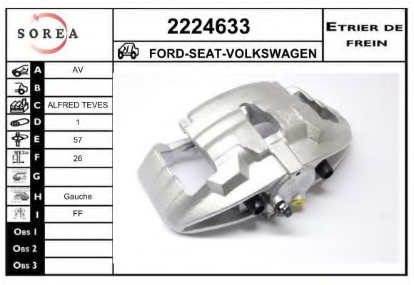 Тип тормозного суппорта : суппорт тормоза (1 поршень)
