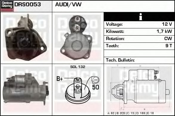 Модель бортовой сети : для транспортного средства с 12В бортовой сетью Мощность стартера [кВт] : 1,7 Число зубцов : 9T