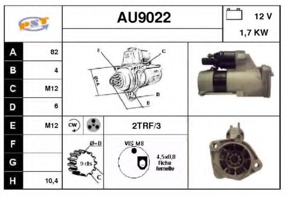 Мощность стартера [кВт] : 1,7 Напряжение [В] : 12 Число зубцов : 9