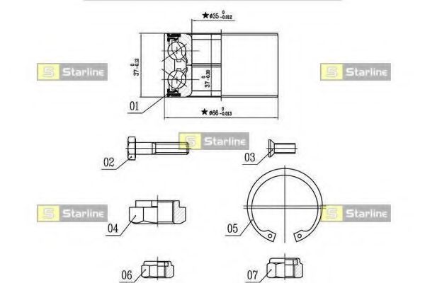 Высота [мм] : 37 Диаметр фаски 2 [мм] : 35 Наружный диаметр [мм] : 66